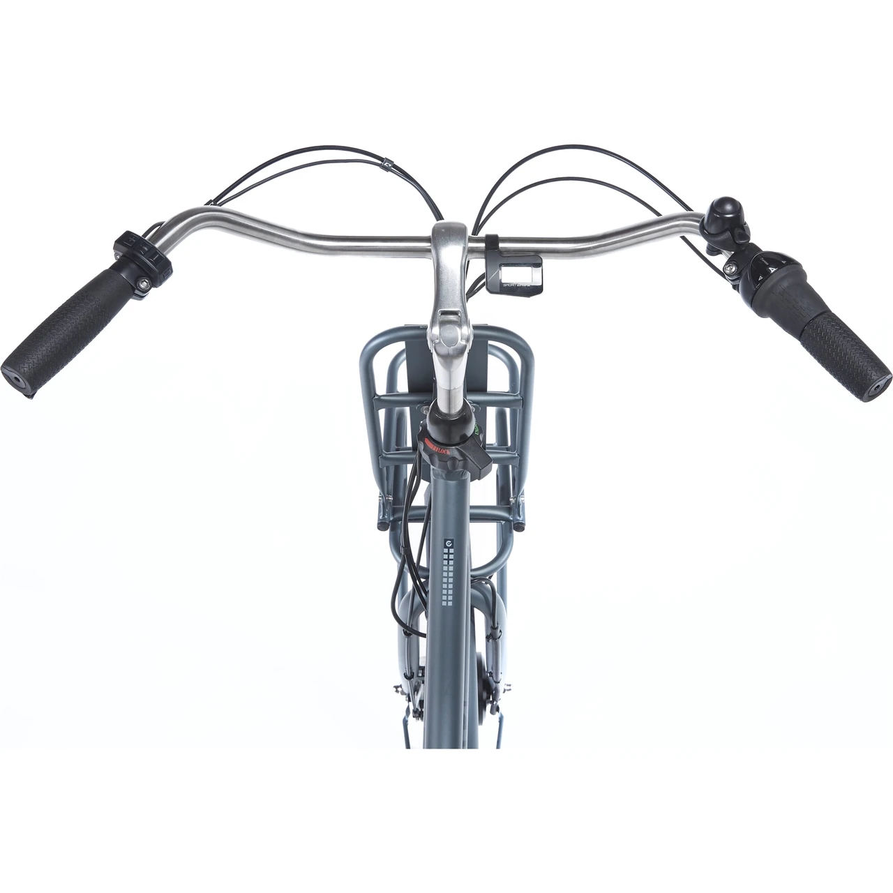 Aan praktisch gebruiksgemak is overal gedacht. Dankzij de stevige voordrager neemt u gemakkelijk extra manden of kratten mee, terwijl de onderhoudsarme Shimano Nexus 7 versnellingen zorgen voor het juiste ritme. Een groot pluspunt bij het in- en uitladen van kinderen of boodschappen is de stabiliteit: met de dubbele pootstandaard en het stuurslot parkeert u de fiets als een huis, zonder dat het stuur omslaat. De accu zit netjes verwerkt in de bagagedrager en is eenvoudig uitneembaar om binnen op te laden.
