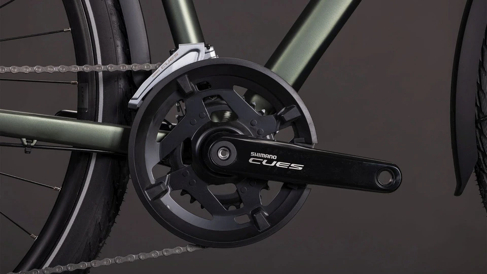 Technisch is deze fiets uitgerust met de gloednieuwe Shimano Cues schakelgroep. Met 18 versnellingen heeft u een enorm bereik om zowel steile heuvels te bedwingen als flink snelheid te maken op het vlakke. De Shimano Cues serie staat bekend om zijn extreme duurzaamheid en soepele schakelgedrag. Veiligheid staat eveneens voorop: de krachtige hydraulische schijfremmen zorgen ervoor dat u onder alle weersomstandigheden snel en gedoseerd tot stilstand komt. De koplamp werkt op een naafdynamo, wat betekent dat u aan de voorzijde altijd licht heeft zonder weerstand te voelen tijdens het trappen.