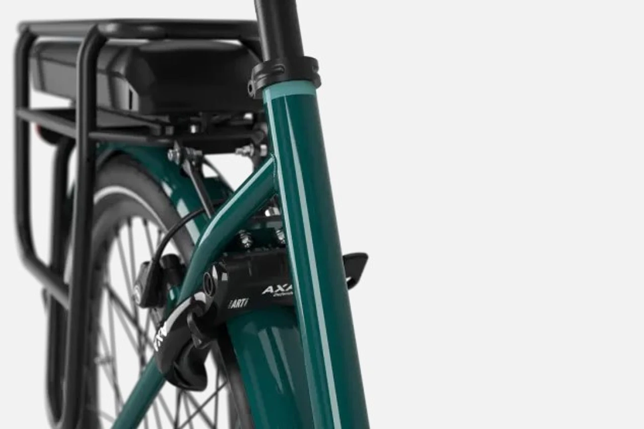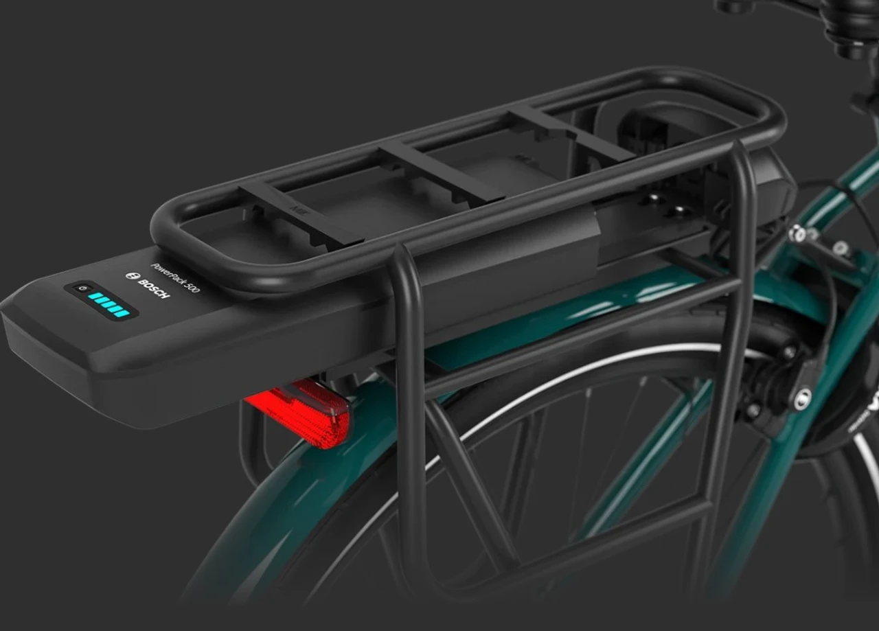 Standaard is de fiets voorzien van een 400 Wh accu, goed voor een actieradius van 50 tot 110 km. Voor wie langere afstanden rijdt, is een upgrade naar 500 Wh mogelijk, waarmee het bereik wordt vergroot tot 60 – 120 km. De accu is uitneembaar en geplaatst op de bagagedrager, wat het opladen eenvoudig maakt.
