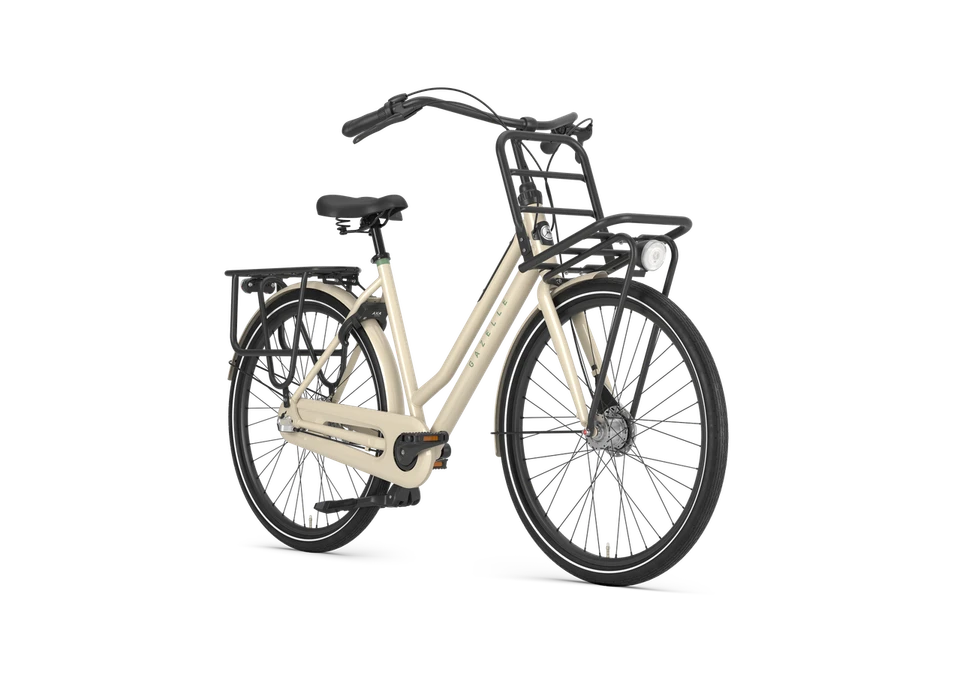 De Gazelle HeavyDutyNL T3 2025 is de ultieme transportfiets voor wie functionaliteit naadloos wil combineren met een stoer en robuust design. Deze fiets is speciaal gebouwd om uw leven makkelijker te maken: of u nu zware boodschappentassen, een overvolle schooltas of een sportuitrusting moet vervoeren, met de stevige voor- en achterdrager neemt u alles moeiteloos mee. De extra brede banden geven de fiets niet alleen zijn karakteristieke ‘urban’ uitstraling, maar zorgen ook voor veel comfort en grip op klinkers en tramrails.