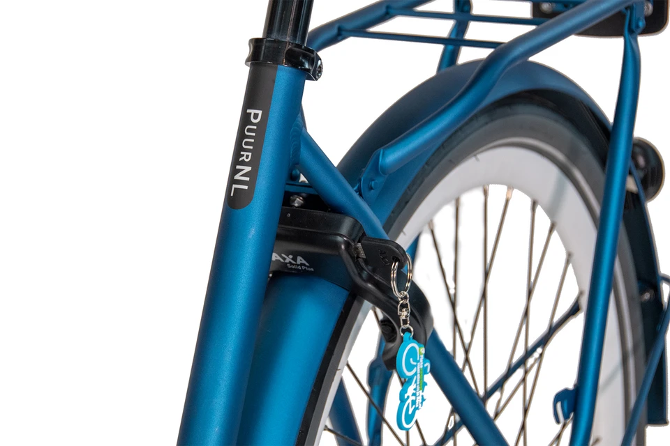 De fiets wordt geleverd zonder snelbinders op de bagagedrager.
