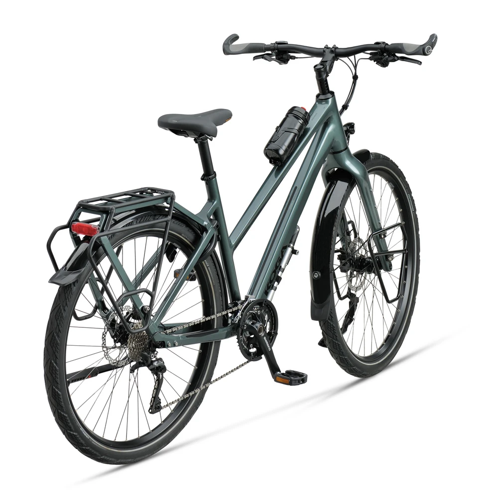 Compleet uitgerust met extra’s zoals een fietspomp, bidonhouder en een AXA Imenso slot.