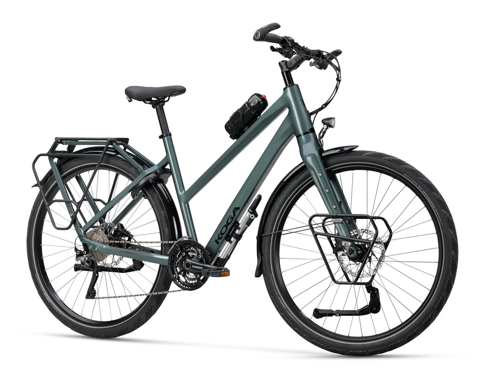 De Koga WorldTraveller 2025 is de ultieme droomfiets voor de avontuurlijke reiziger die geen grenzen kent. Deze hoogwaardige trekkingfiets is speciaal ontworpen om zware bepakking en lange afstanden moeiteloos aan te kunnen. Het frame is een staaltje vakmanschap: lichtgewicht aluminium, ‘smooth-welded’ afgewerkt zodat lasnaden onzichtbaar zijn, en met alle kabels strak geïntegreerd. Dankzij de bagagedragers aan zowel de voor- als achterzijde neemt u uw volledige kampeeruitrusting eenvoudig mee. De ingebouwde stuurbegrenzer zorgt er bovendien voor dat de fiets, zelfs met volle tassen, stabiel blijft staan als u hem parkeert.