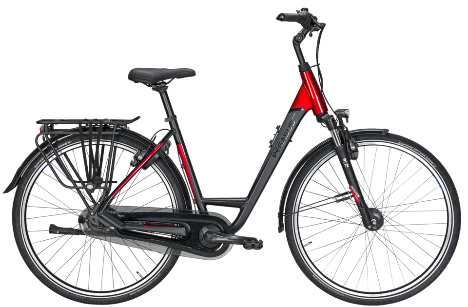 Comfortabele verende voorvork dempt schokken van klinkerwegen en drempels.