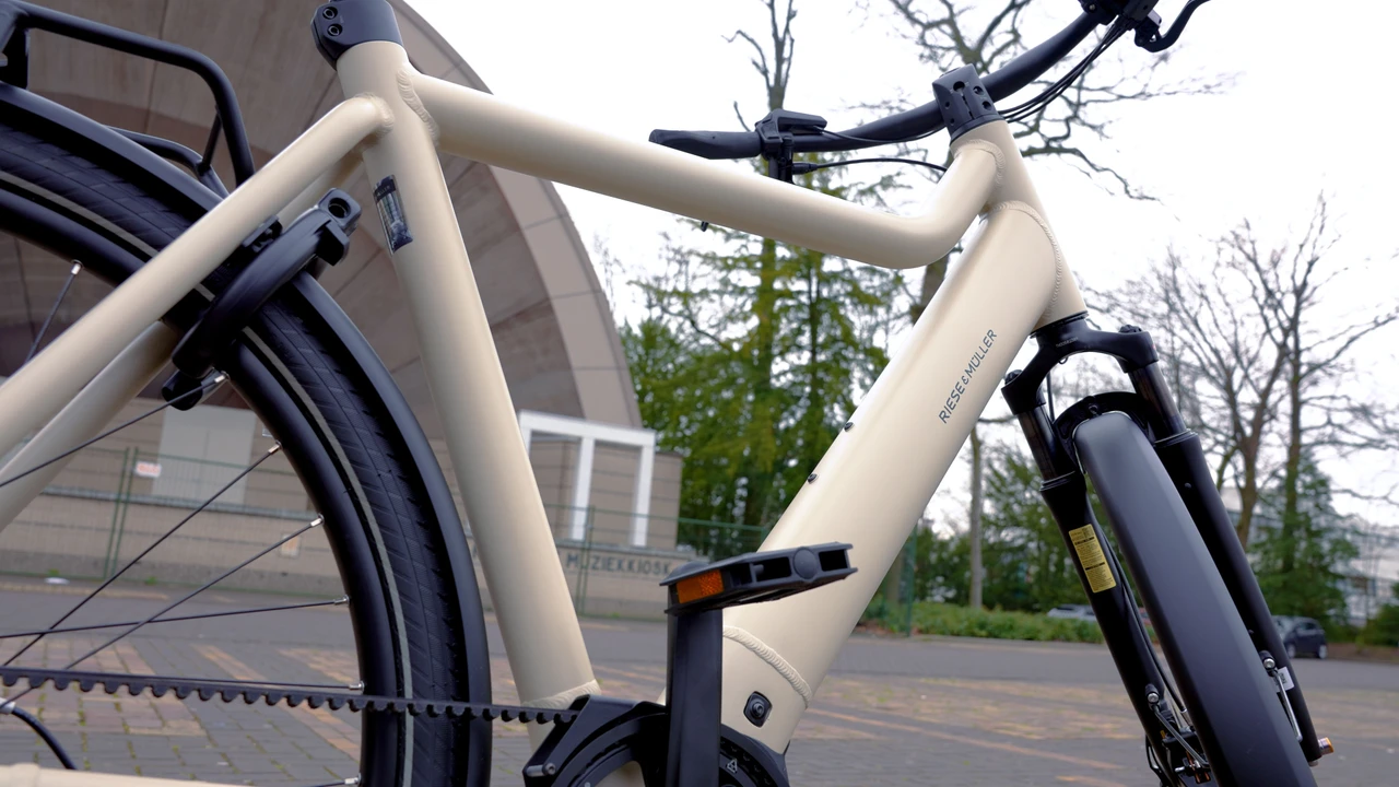 Gewicht/Overig: Geveerde voorvork, riemaandrijving, geïntegreerde accu en 5 jaar garantie op e-bike techniek
