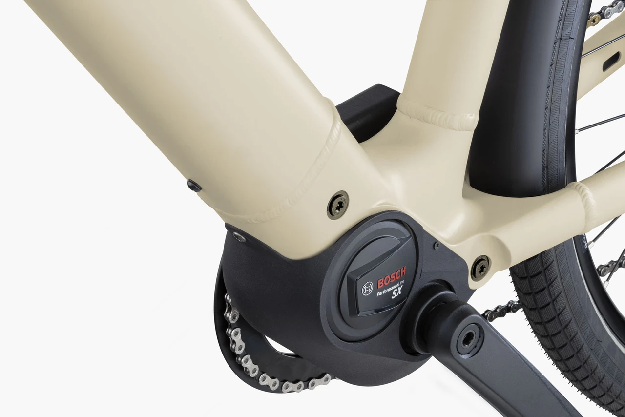 De compacte maar krachtige Bosch Performance SX middenmotor ondersteunt je fluisterstil en uiterst natuurlijk. Dankzij de traploze versnelling fiets je altijd in het perfecte tempo, zonder vaste schakelmomenten. De onderhoudsarme riemaandrijving, hydraulische schijfremmen en comfortabele vering maken deze e-bike tot een zorgeloze keuze voor wie kwaliteit, gemak en design belangrijk vindt.