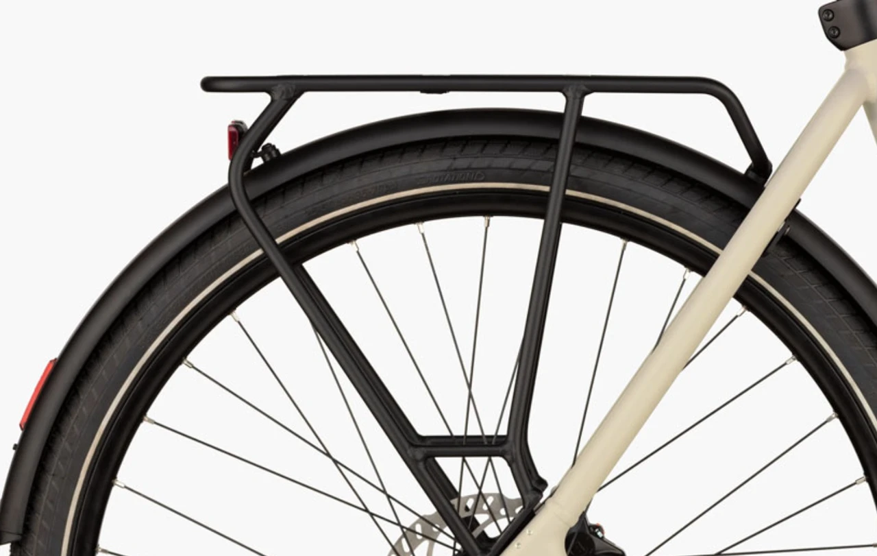 Comfortabele uitrusting met verende voorvork, bagagedrager en frameslot