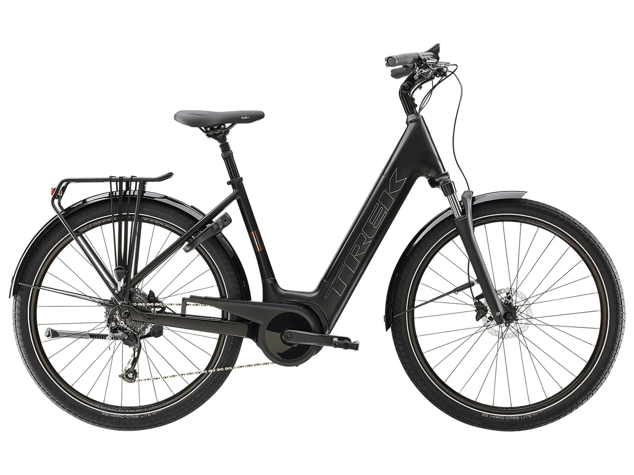 Voor comfort tijdens langere ritten is de Trek Verve+ 3 uitgerust met een verende voorvork, ergonomische zithouding en betrouwbare hydraulische schijfremmen die onder alle weersomstandigheden sterke remkracht leveren. De geïntegreerde LED-verlichting werkt via de accu en zorgt voor goede zichtbaarheid in het verkeer.